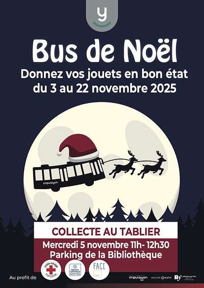 Impulsyon organise la 8ème édition du « Bus de Noël » du 3 au 22 novembre 2025 pour collecter des jouets qui seront redistribués par la Croix-Rouge, le Secours Catholique et FACE Vendée* auprès des enfants agglo-yonnais en ayant besoin.