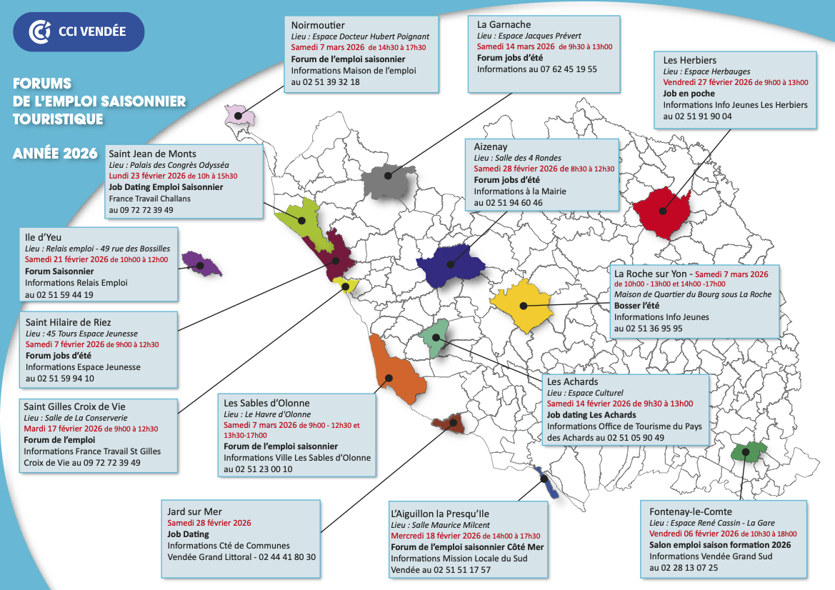 Retrouver les dates et lieu des événements mis en place en Vendée pour trouver un emploi saisonnier en 2026
